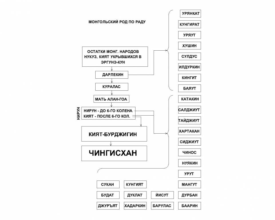 ** все монголы происходят из их рода. опять упрек летописца, что НЕВЕРНЫЕ. итак, два вида: ОГУЗЫ (благоразумные) и НЕВЕРНЫЕ ОГУЗЫ = ТОГУЗ-ОГУЗЫ (БИШБАЛЫК) = ТАТАРЫ = разбиты = КИЯТ и его люди укрылись на севере - в горах АЛТАЯ = породнились с соседями, так как другого выбора не было = разрослись родами по СОСЕДНИМ НАРОДАМ, окрепли = ЧХ = возвращение НА РОДИНУ ПРЕДКОВ - река ТАЛАС и ТЯНЬ-ШАНЬ в верховьях ТАЛАСА (летовки) и так далее...