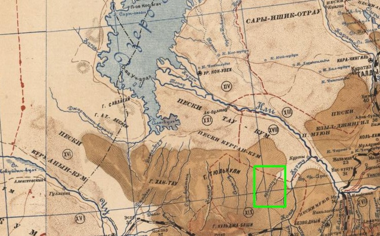 Итак, от КУЛЬДЖИ (БЕШБАЛЫКА) до Ж(З,С)АРКЕНТА = SRQND(T) = 125 км. Вполне можно сказать, что расстояние в 140 км - пределы ЖАРКЕНТ(Д)А.