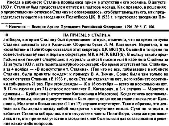 "22 июня в 5 часов 45 минут у Сталина были Молотов, Берия, С.К. Тимошенко, Мехлис, Г.К.Жуков. Чуть позже подошли Маленков, Микоян, Каганович, Ворошилов, Н.Г. Кузнецов, Г. Димитров и др. (всего более двух десятков человек, некоторые входили и выходили по несколько раз). До 28-го июня включительно заседания в кабинете Сталина проходили ежедневно".