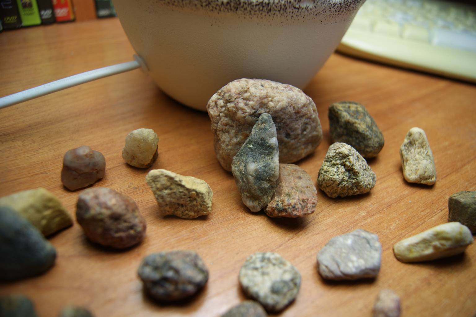 Вглядывайтесь в текстуру камня вкрапления на камне в основном округлой формы.