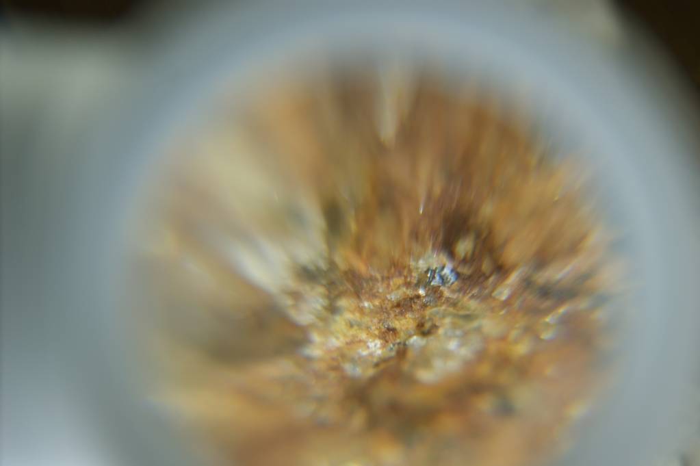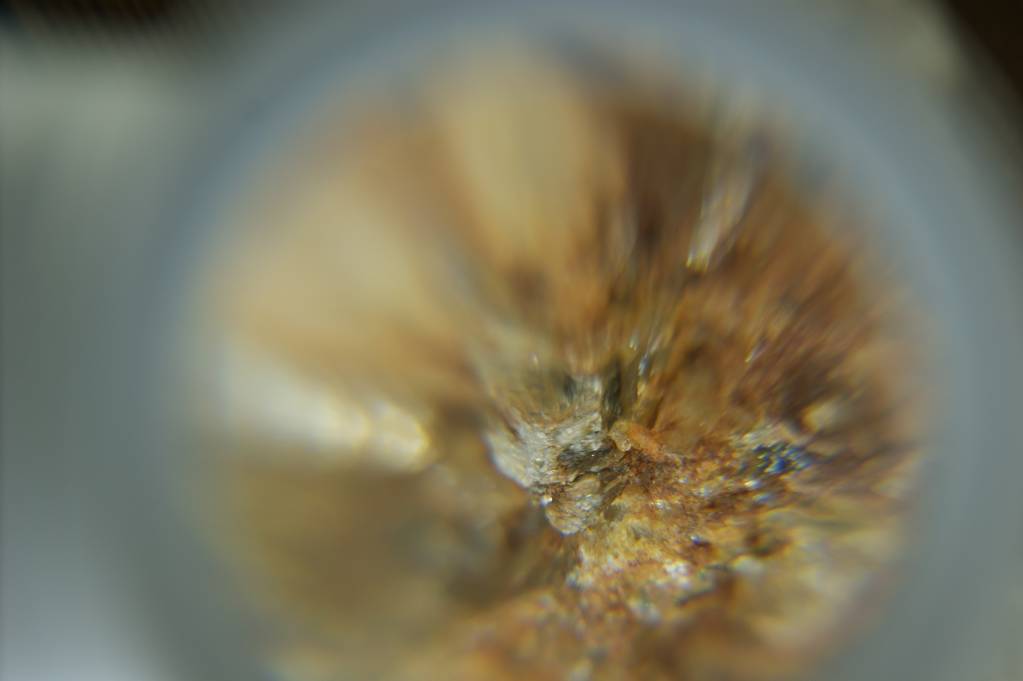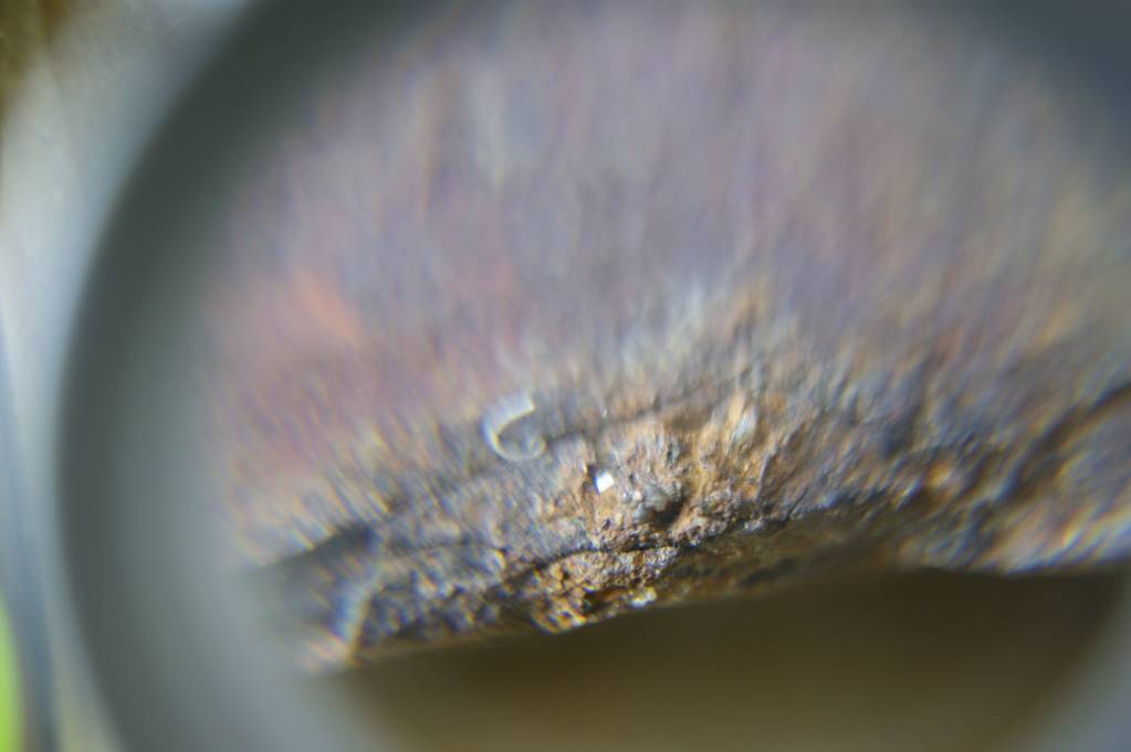 Фото металлического предмета найденного в торфяных месторождениях, увеличение от 25х