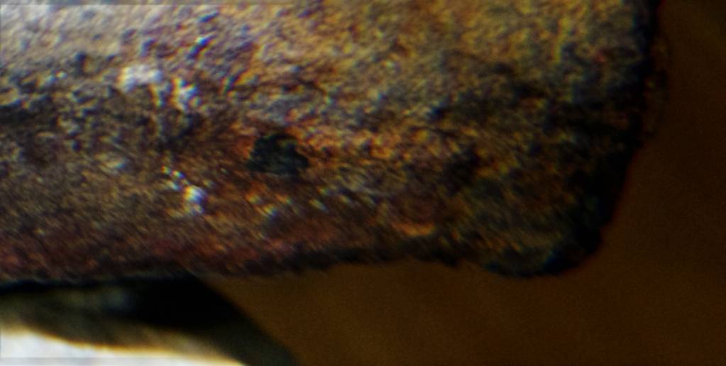 Рассмотрим металлический объект, найденный в торфяных месторождениях на севере Подмосковья. Увеличение от 10 - 45х