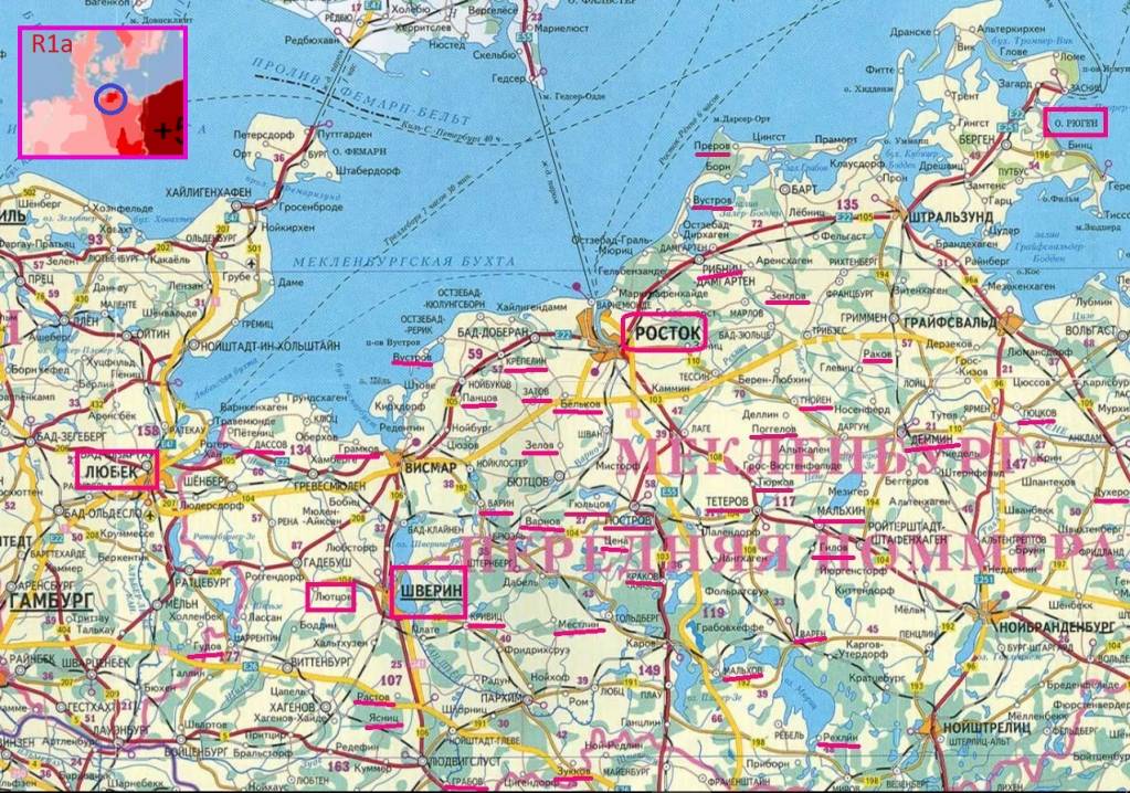 Стоит посмотреть на побережье Померании, где очень много славянских названий (в том числе Варин, Варен и Варнов) и которая близка к Скандинавии. Это может объяснять и утверждения о родстве, и отсутствие у Рюриковичей I1 и R1b.