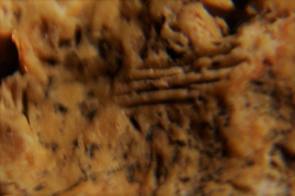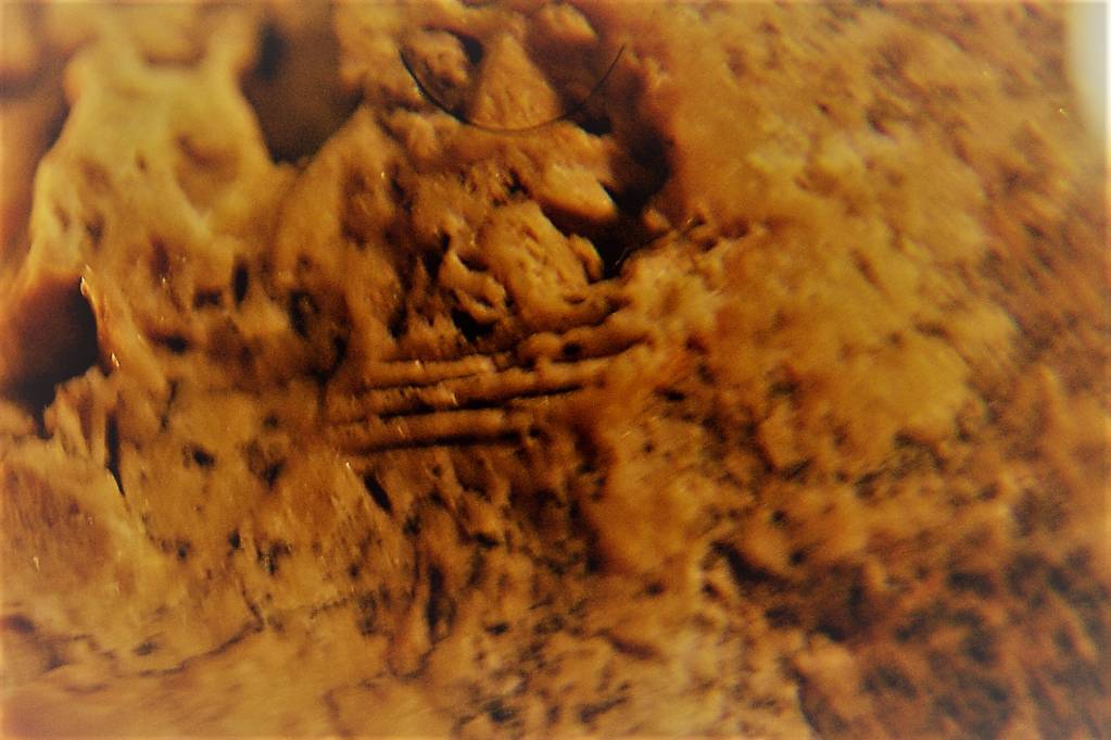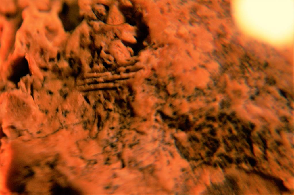 Увеличение от 55х, на камне ярко выраженные знаки и рисунки древней цивилизации. Смотрите сами