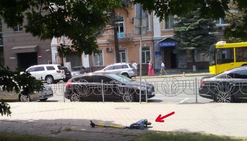 Лежит на боку. Вертится подпись к снимку: "Самокат устал".