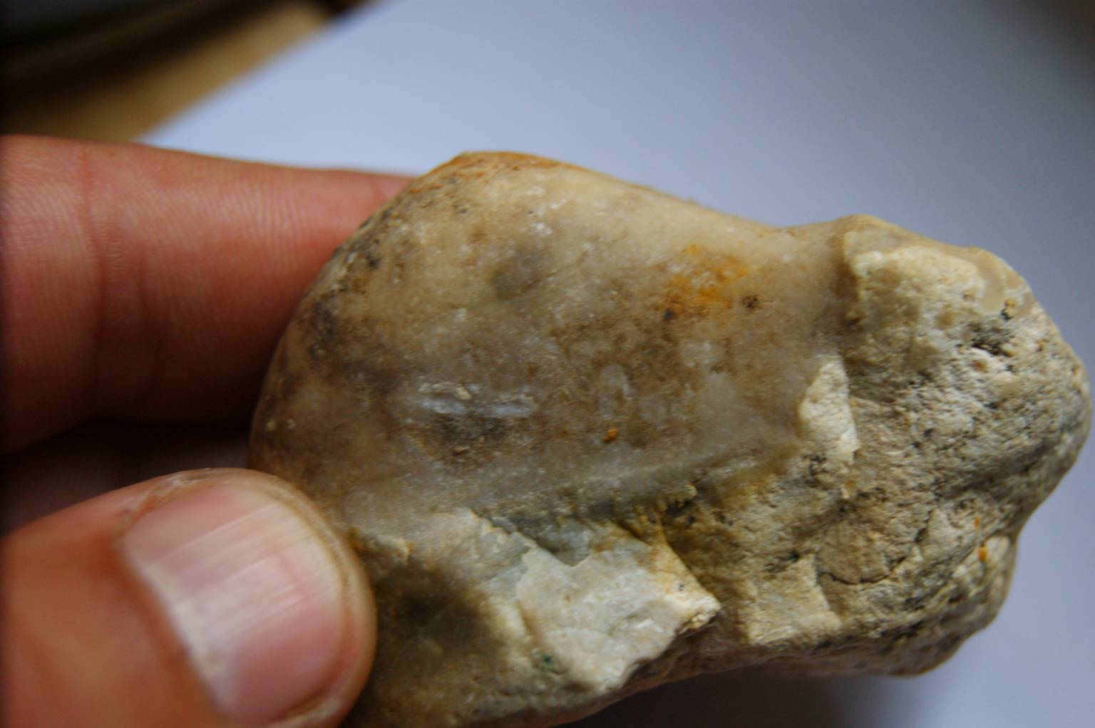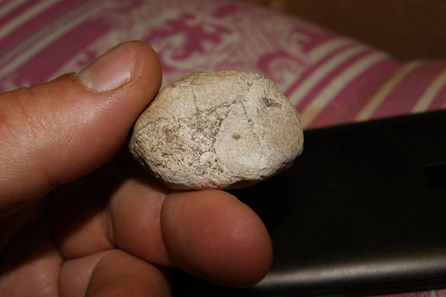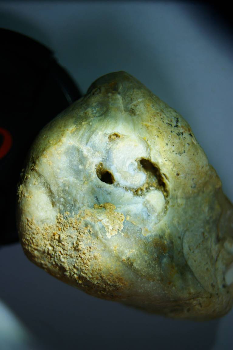 Гость что-то рукотворное на камне появляется на его поверхности вы с этим надеюсь согласны. Для того чтобы на камне рукотворное было более заметно его предварительно обрабатывают пилят, шлифуют и полируют затем наносят надпись, рисунок, для изразца узор. Вы же предъявляете речные отложения гальку, окатыши или карьерные обломки. Чтобы вы поняли собственную ошибку распилите свой образец или на худой случай расколите и вы увидите внутри камня подобные письмена это и есть петрография изучение минералов и их включений. Подымаете окатанный кварцит на берегу ручья, а в нем что-то желтеет еле заметно, разбили его, внутри золотое зерно грамм этак 5-6 вот вам и письмена.