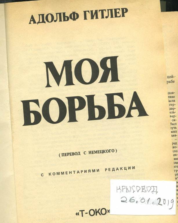 Российское законодательство запрещает распространение этой книги - её невозможно найти. Никто в РФ не имеет право продавать эту книгу и распространять её. Получается, что ни у кого её нет. А если она есть у кого-то, это преступник-нацист?