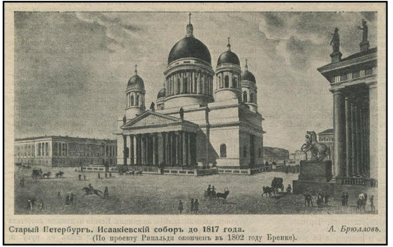 Кроме того, Вы уверены, что газетная репродукция – это действительно репродукция картины А.П. Брюллова, где изображен собор по состоянию до 1817 года? Если да, буду весьма благодарен за информацию о том, как называется эта картина, в каком году написана и в каком музее находится.