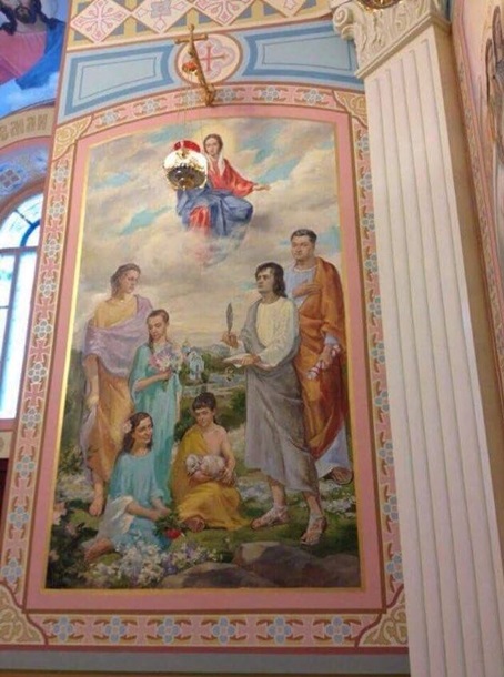 Есть насущный вопрос к специалистам: то, что на фреске - это просто антиисторическая мазня или есть какая-то символика в одеждах Порошенко и его семьи? Насколько мне известно, детали одежды патриция говорили о его статусе (врожденный или приобретенный, например). Заранее благодарна!