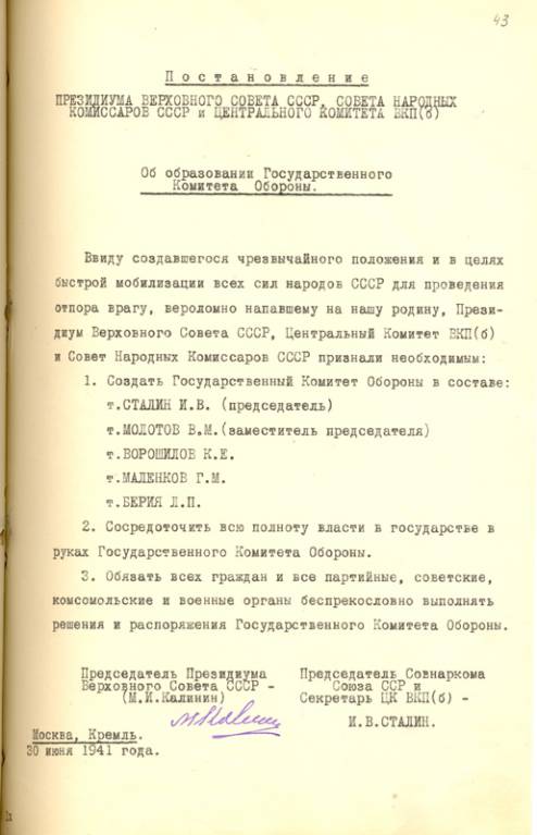Сначала размещу сканы Постановления ГКО № 4сс от 3 июля 1941 года.