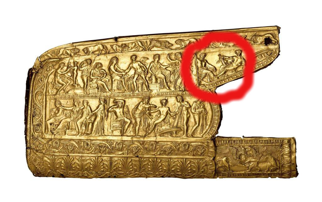 5. Скифы говорят, что их народ моложе всех других и произошел следующим образом: в их земле, бывшей безлюдной пустыней, родился первый человек, по имени Таргитай; родителями этого Таргитая они называют, по моему мнению неверно, Зевса и дочь реки Борисфена. Такого-де происхождения был Таргитай, а у него родились три сына: Липоксай, Арпоксай и младший Колаксай. При них упали-де с неба на скифскую землю золотые предметы: плуг, ярмо, секира и чаша. Старший из братьев, первым увидев эти предметы, подошел ближе, желая их взять, но при его приближении золото воспламенилось. По его удалении подошел второй, но с золотом повторилось то же самое. Таким образом золото, воспламеняясь, не допустило их к себе, но с приближением третьего брата, самого младшего, горение прекратилось, и он отнес к себе золото. Старшие братья, поняв значение этого чуда, передали младшему все царство.
