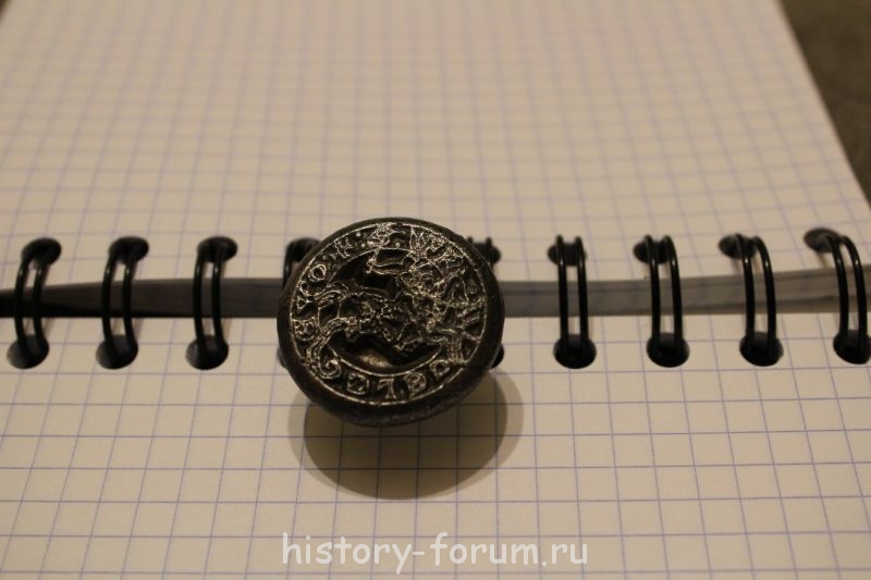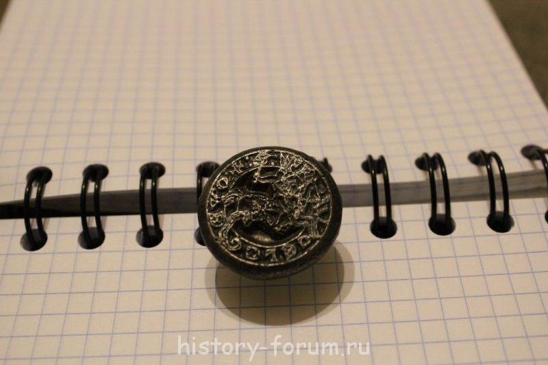 Всадник напоминает "Погоню" - герб Великого княжества Литовского. С учетом того, что это печать (или штемпель) и изображение на ней зеркальное: http://images.yandex.ru/yandsearch?text ... source=wiz