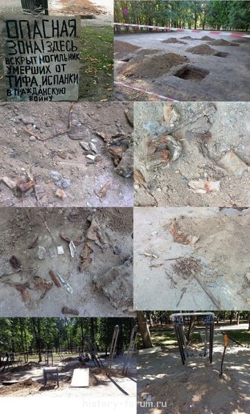 Спортивные тренажеры установленные по указке нечистоплотных чиновников на месте разрытого могильника с прахом воинов, умерших от тифа, испанки и других инфекционных заболеваний в годы Первой мировой и Гражданской войн: