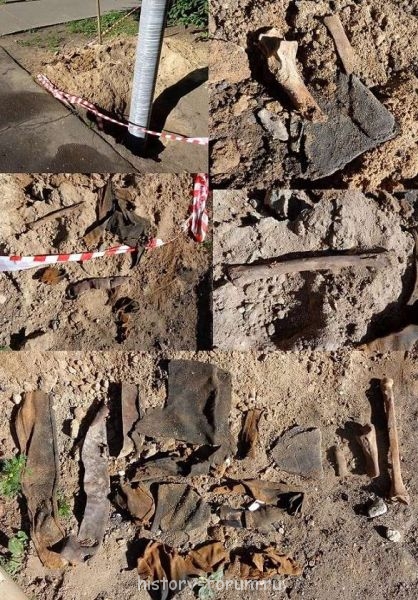 Истлевшие клочки мундиров и останки Российских авиаторов, выброшенные на поверхность во время рытья ям для фонарных столбов:
