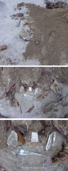 Преодолев преграду, щуп легко ушел в пустоту на всю свою длину, что свидетельствует о том, что в земле находятся могильные полости: