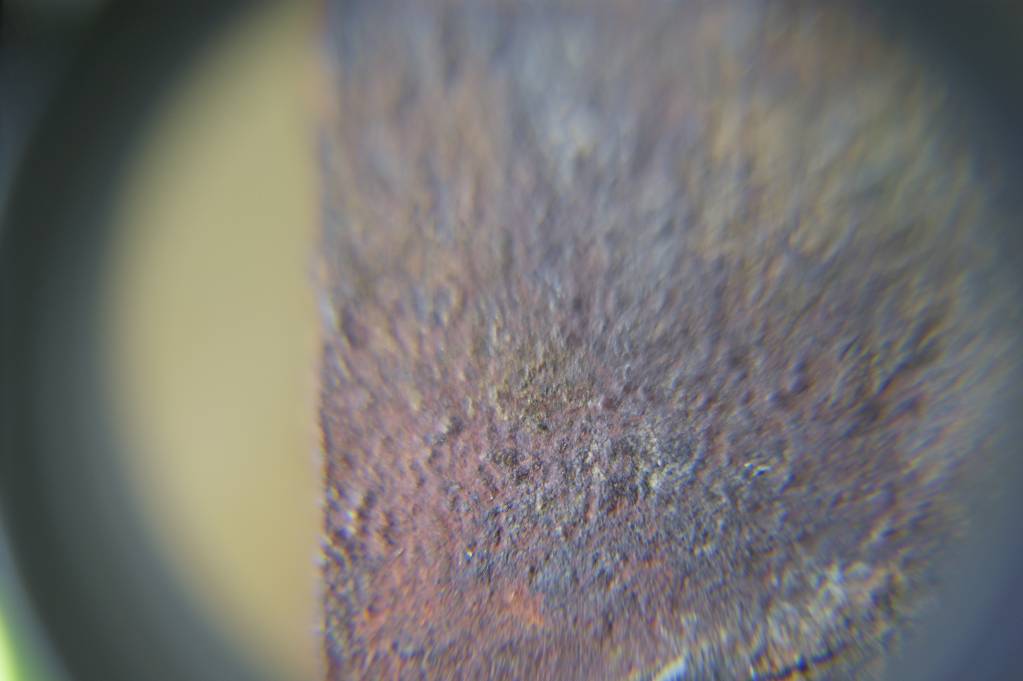 Фото металлического предмета найденного в торфяных месторождениях, увеличение от 25х